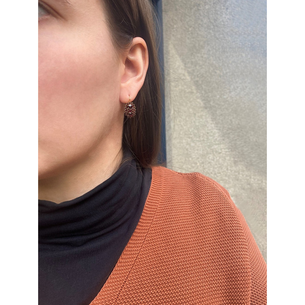Přívěsek ve tvaru kapky zhotovený ze žlutého 14karátového zlata. Povrch přívěsku je posázený přírodními českými granáty a almandiny. Označen československým puncem "čejka" používaným mezi lety 1949-1992, ryzostním číslem "585" a výrobní značkou Granátu Turnov.