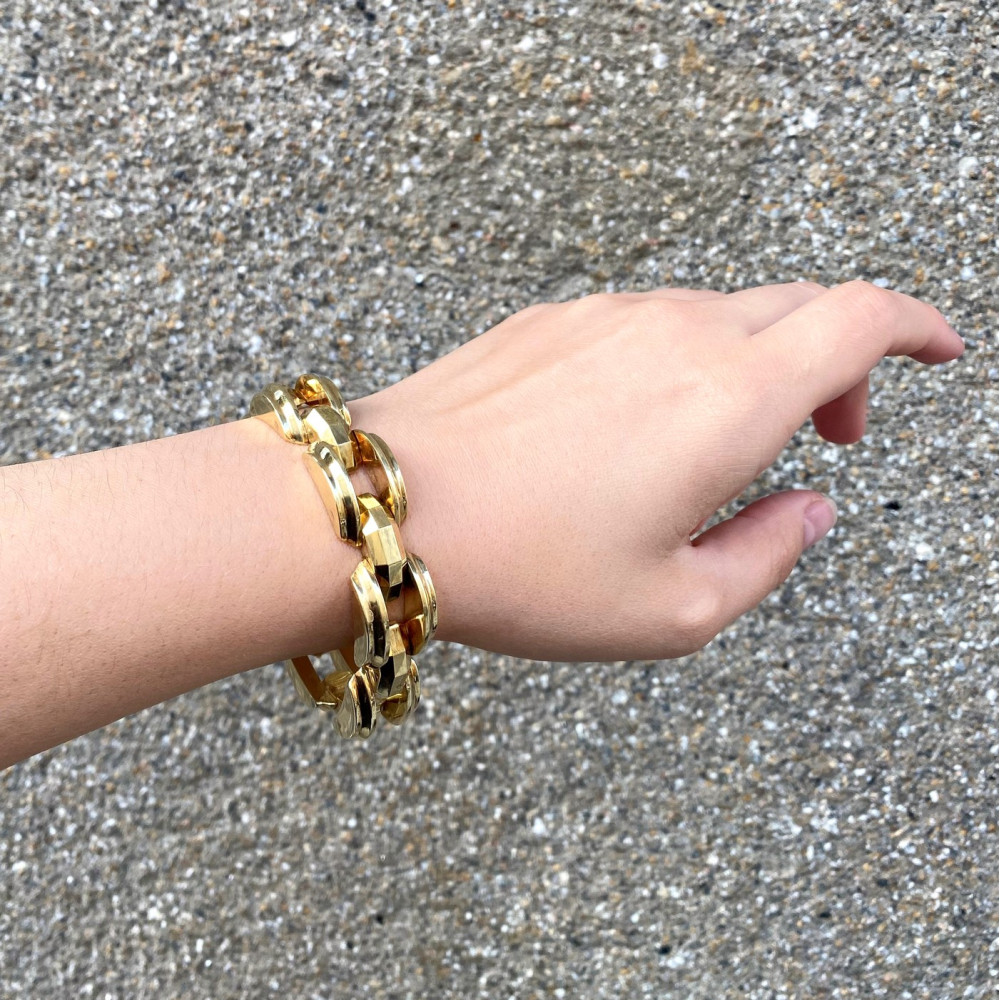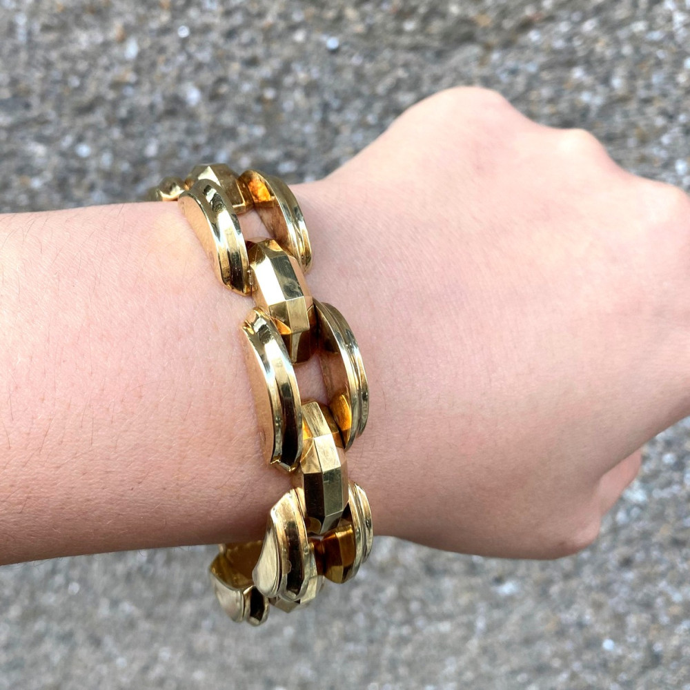 Zlatý art deco náramek s fasetovanými články - 18,5 cm