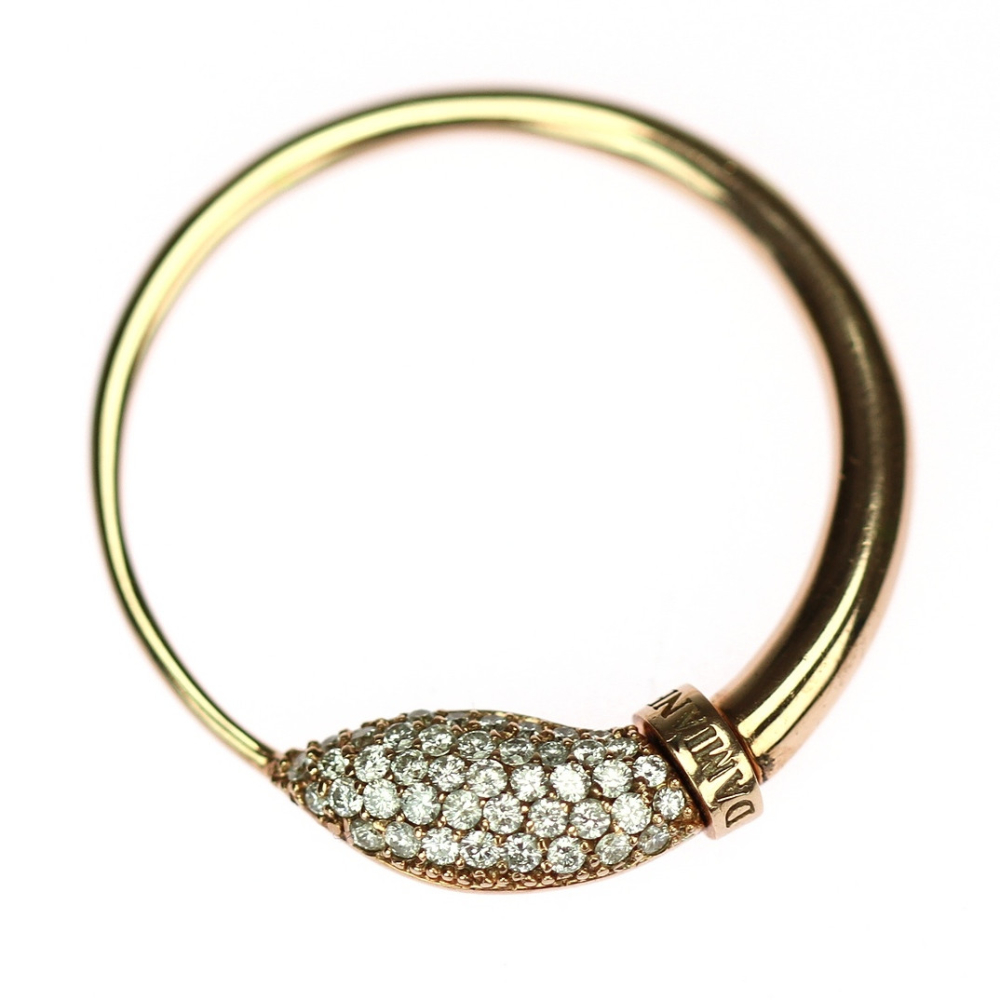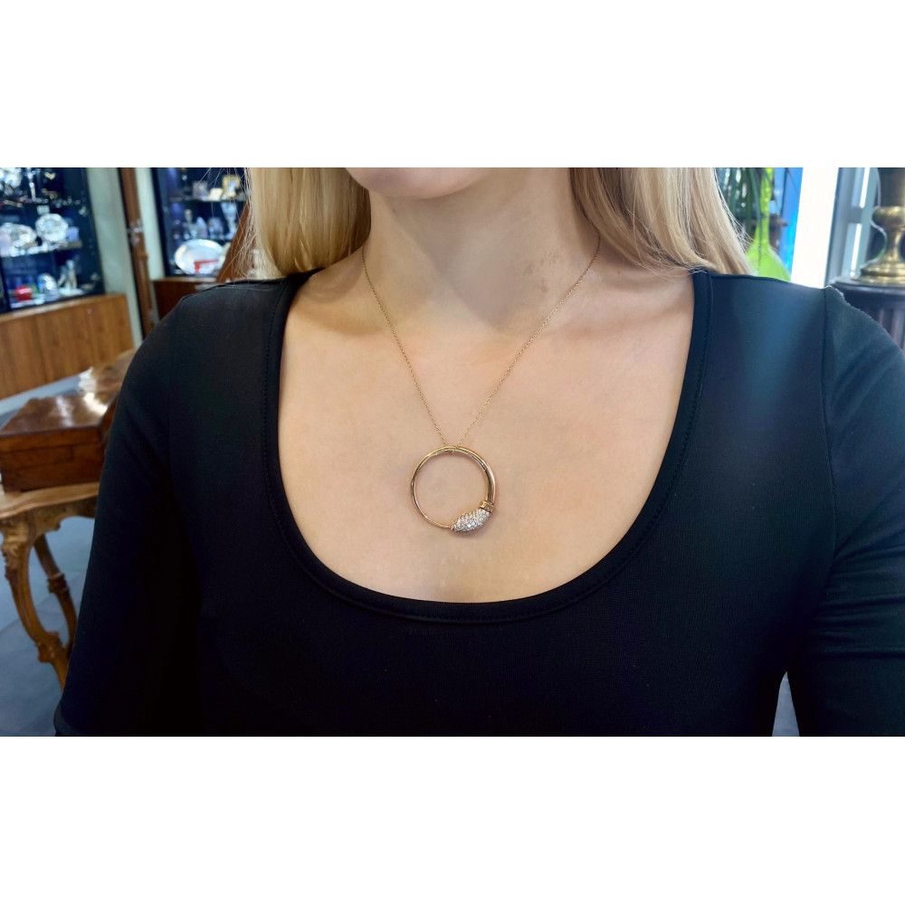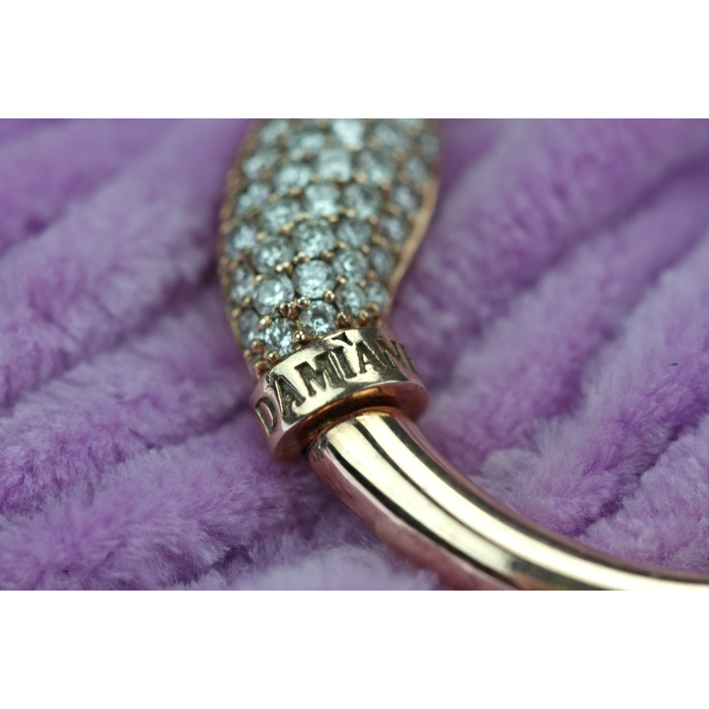 Designový přívěsek ve tvaru kruhu vyrobený z růžového 18karátového zlata zdobí 43 přírodních diamantů briliantového brusu, každý váží 0,03 ct, celková hmotnost diamantů činí 1,29 ct. Dále je na něm nápis "DAMIANE".