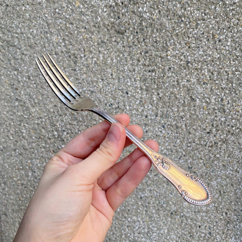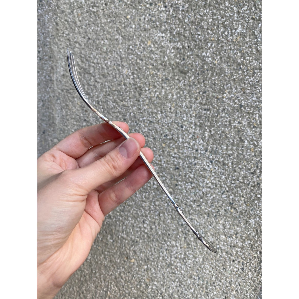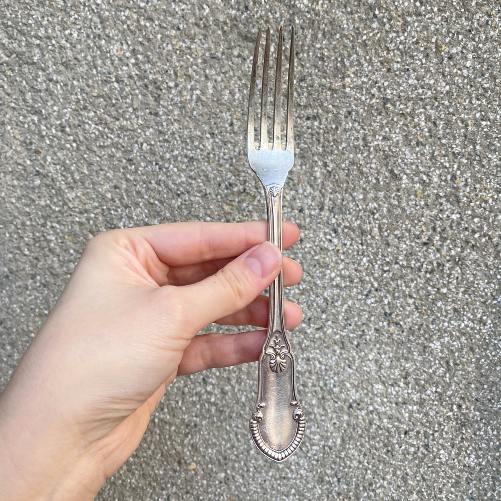 Vidlička vyrobená v empírovém stylu v polovině 20. století slavnou bruselskou stříbrnickou firmou Delheid Frères. Materiálem je stříbro o ryzosti 800/1000. Nově značeno současným českým puncem.