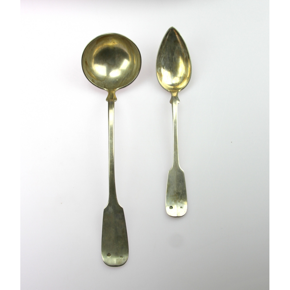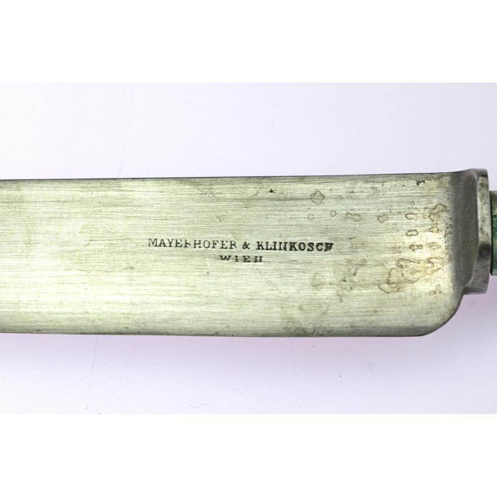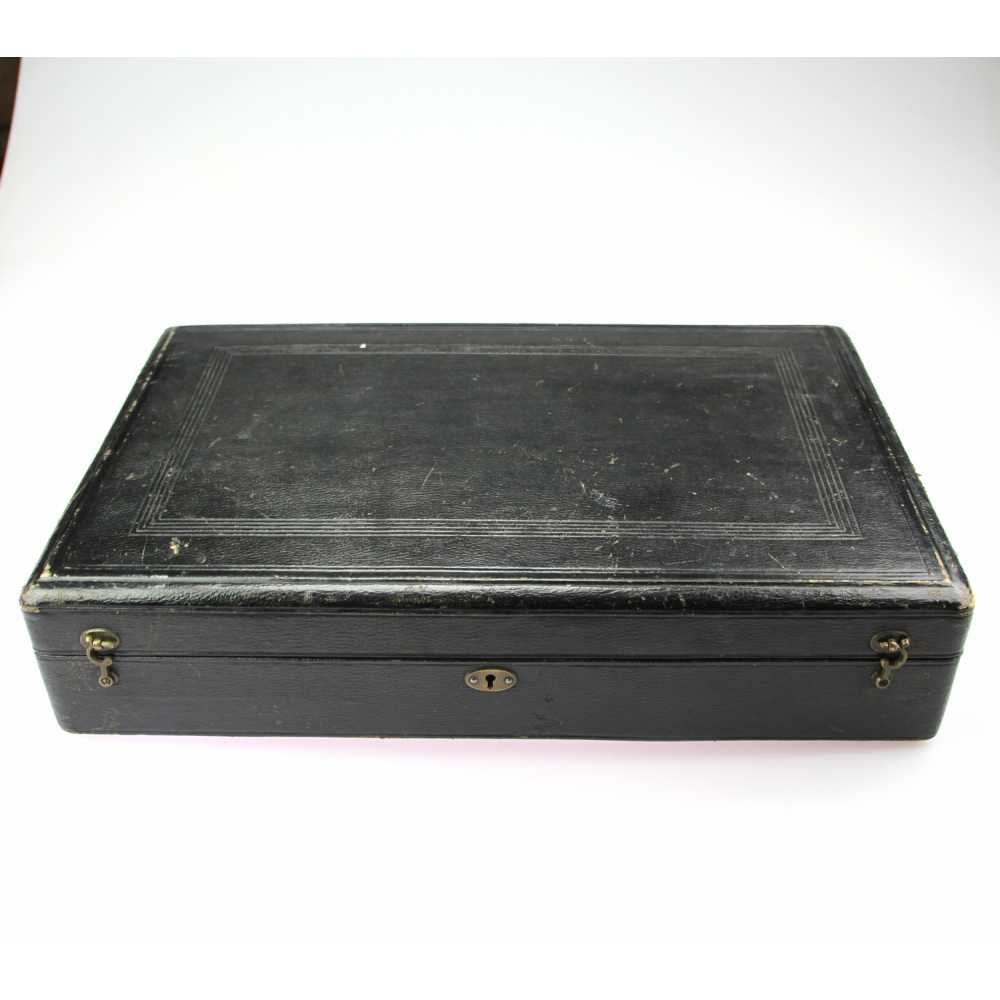 Sada příborů (lžíce ve čtyřech velikostech, vidličky ve dvou velikostech, nože ve třech velikostech, tři naběračky a zdobená obracečka) pro šest osob uložená v originální etuji. Vyrobeno ze stříbra v letech 1854 a 1856, značeno lotovými puncy, malé lžičky puncem "Diany" a čtyřmi vídeňskými mistrovskými značkami: