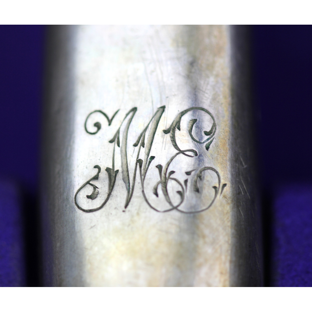 Opatřeno gravírovaným monogramem "M.E". Zlaceno, běžným opotřebením je zlacení místy setřené.