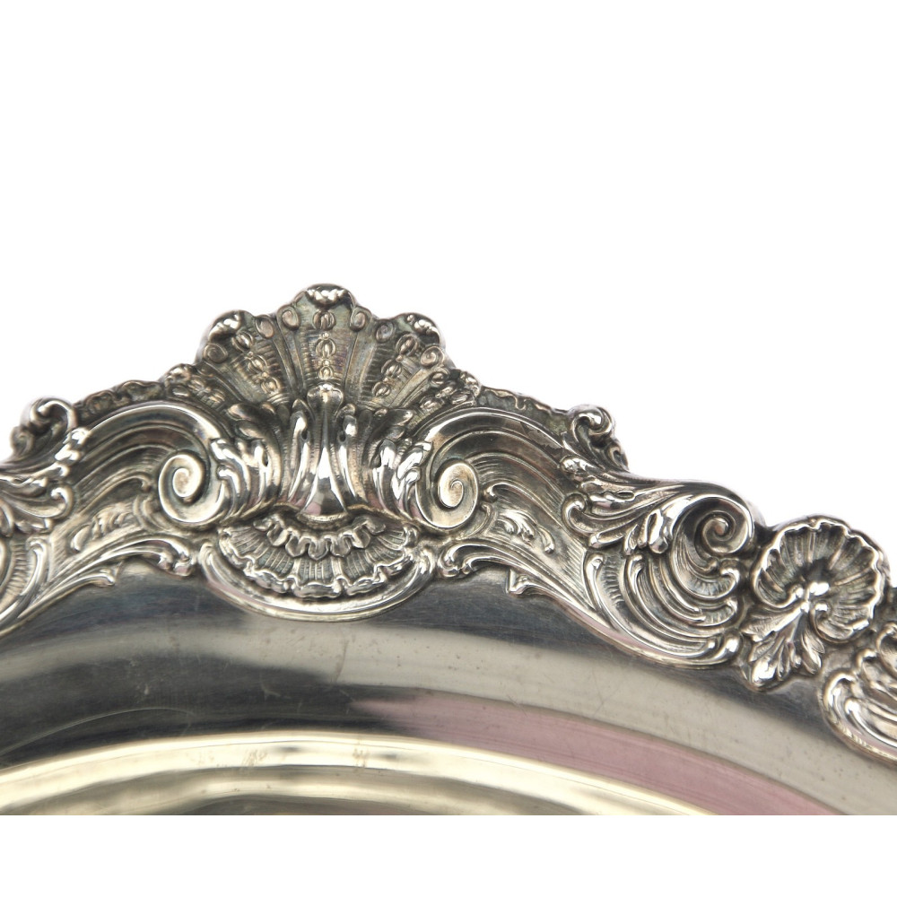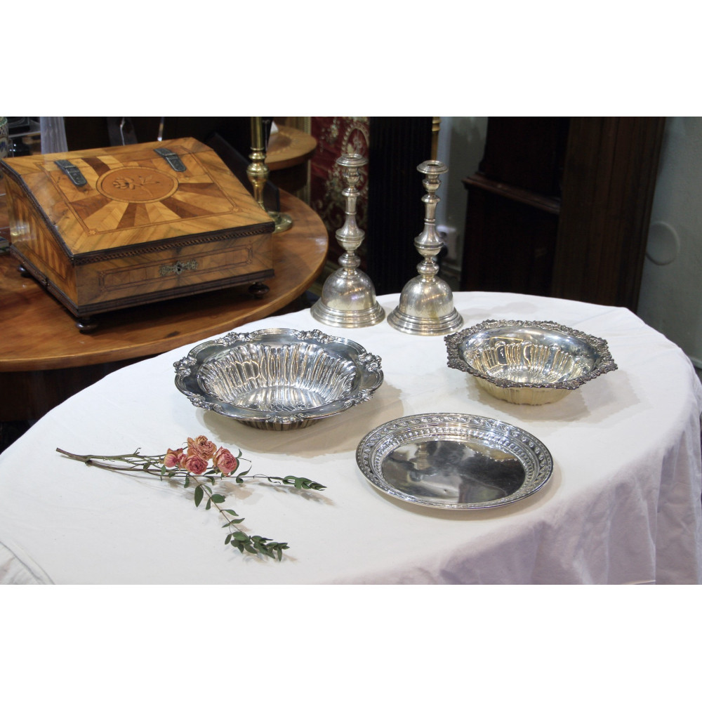 Kruhová bohatě zdobená miska vyrobená na počátku 20. století v Americe stříbrnickou společností Meriden Britannia Company. Miska je dutá, vyrobená z dvojitého masivního stříbrného plechu. Značeno kaligraficky ztvárněným monogramem "DBM"(?). K předmětu je přiloženo osvědčení z Puncovního úřadu.