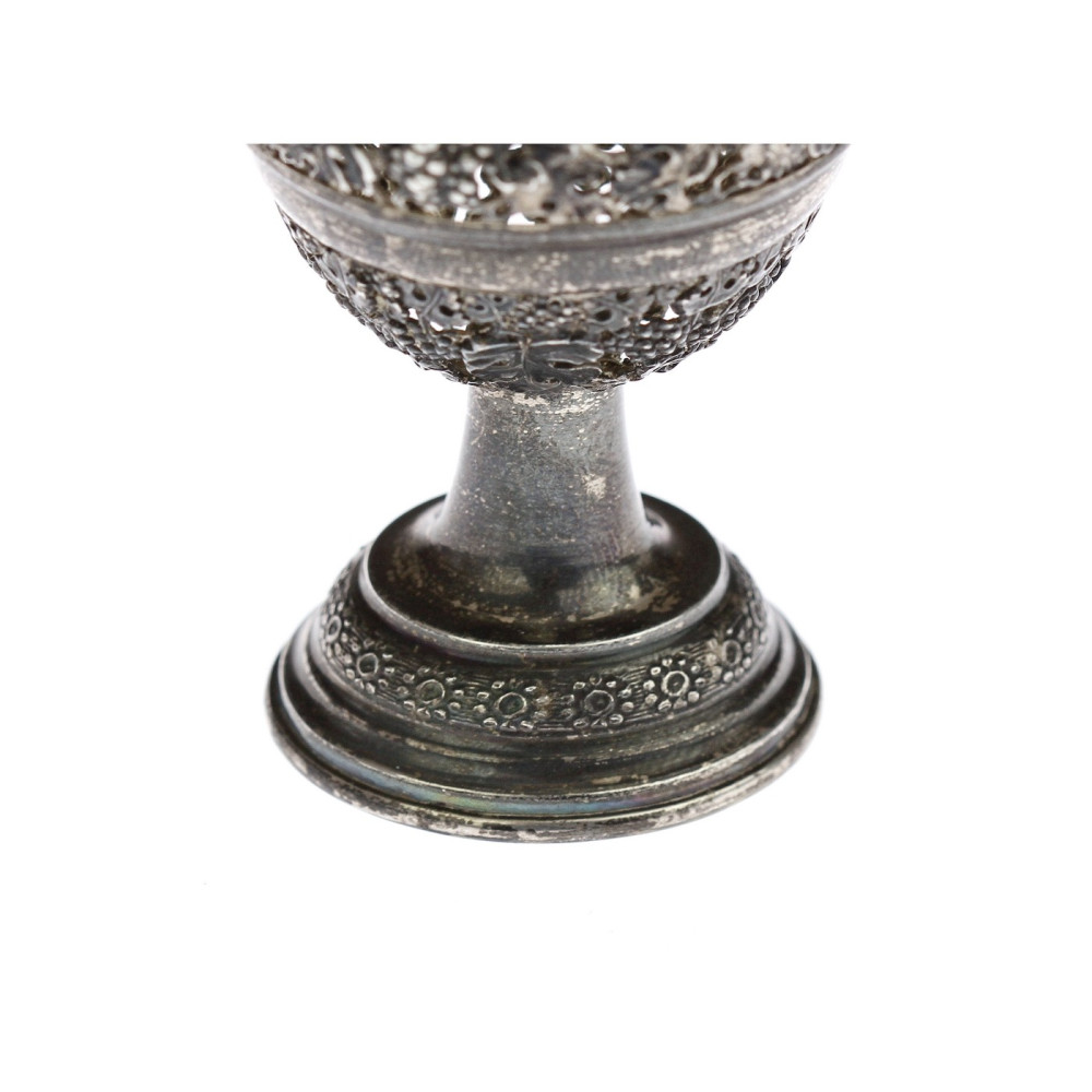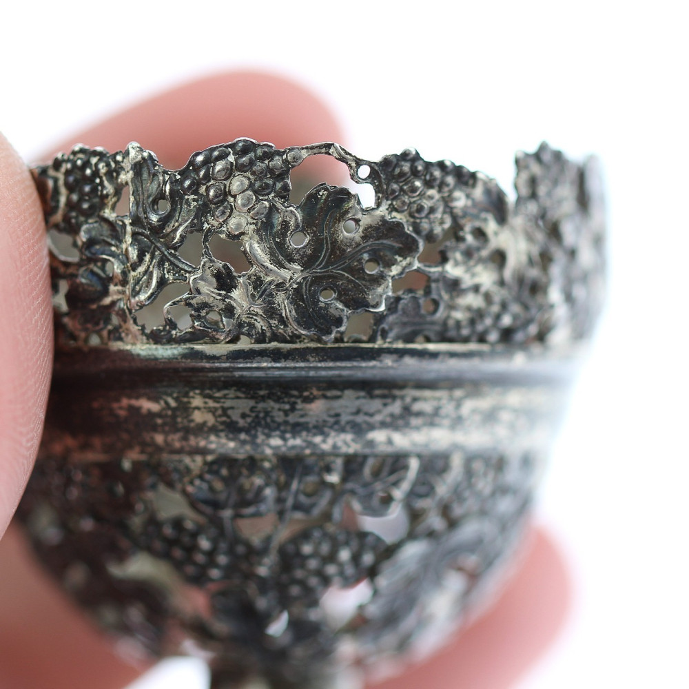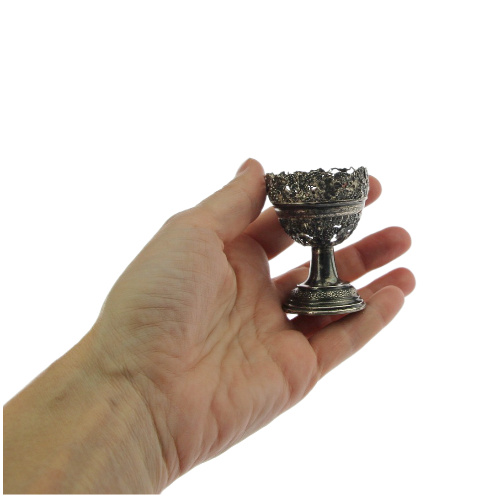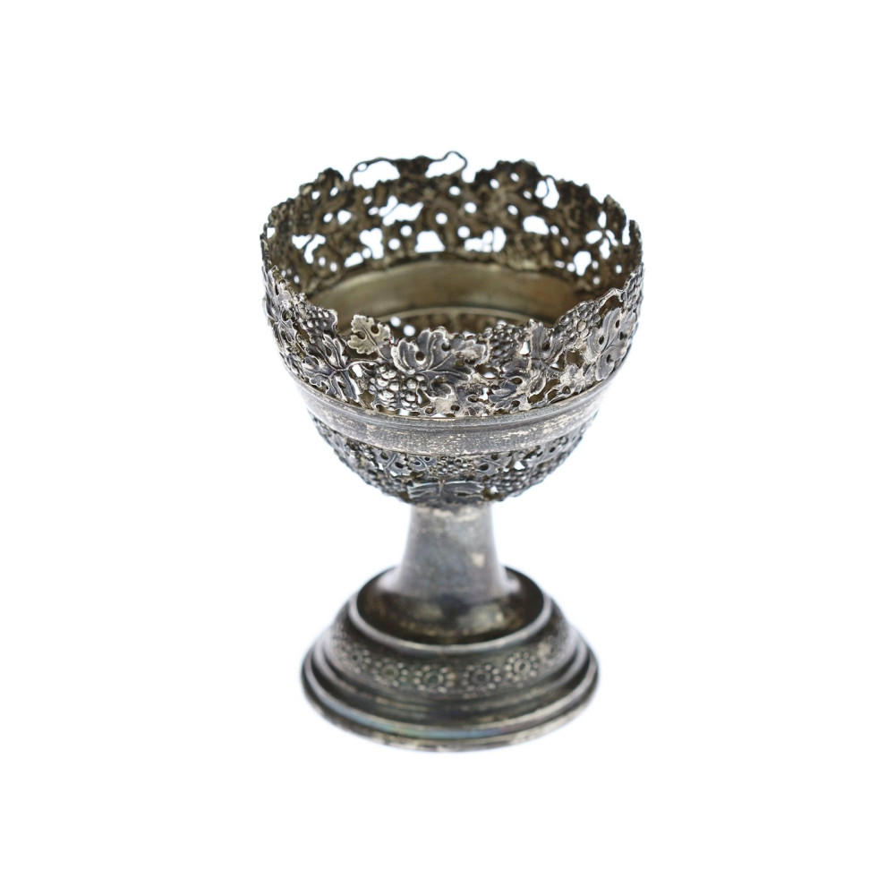 Talířek o průměru 3,9 cm zhotovený ze stříbra (ryzost Ag 800/1000). Značen je ryzostním číslem, mistrovskou značkou a státním puncem používaným mezi lety 1929-1941.