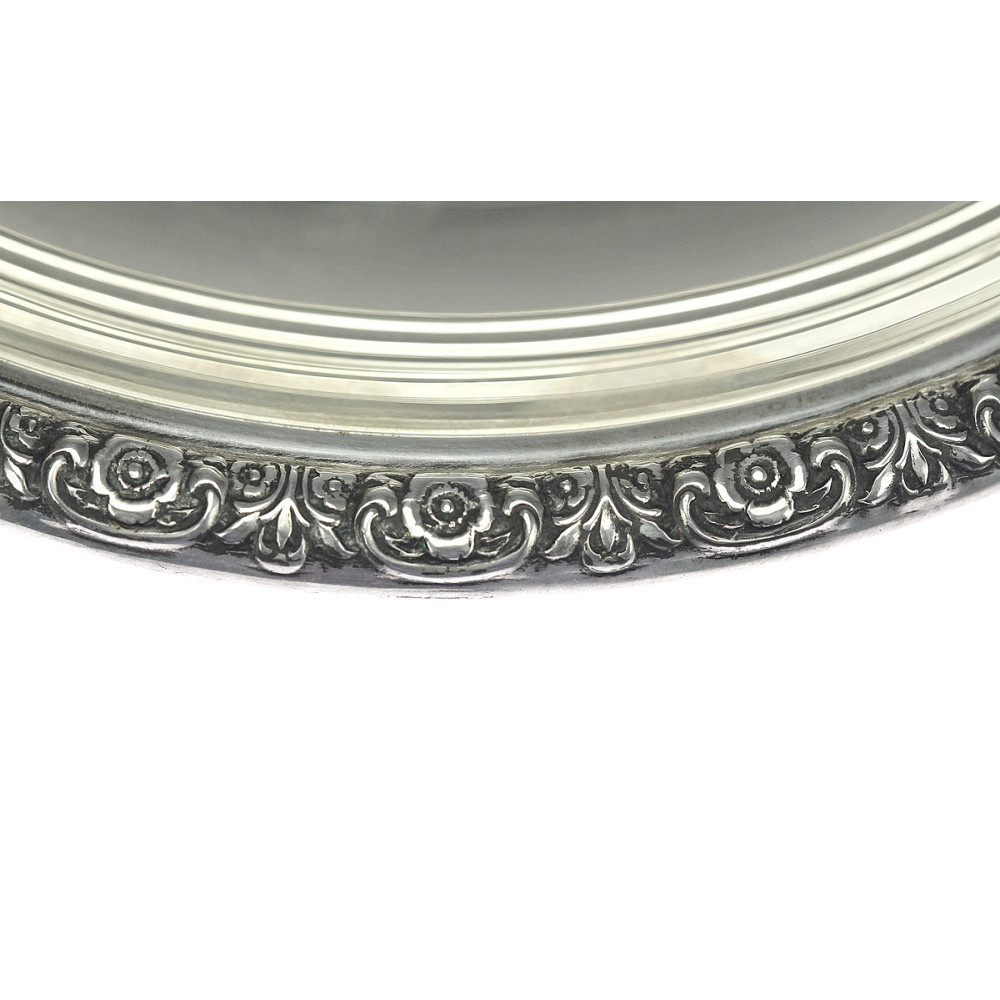 Oválná mísa na ovoce vyrobená zcela ze stříbra vyšší ryzosti (Ag 925/1000) americkou firmou Lebkuecher & Co., která byla činná mezi lety 1896-1909. Materiálově velice solidní umělecko-řemeslnou práci podtrhuje na okrajích jemný florální reliéf a monogram "MSL"(?).Firmu Lebkuecher & Co. založili roku 1896 tři společníci - Arthur E. Lebkuecher,...