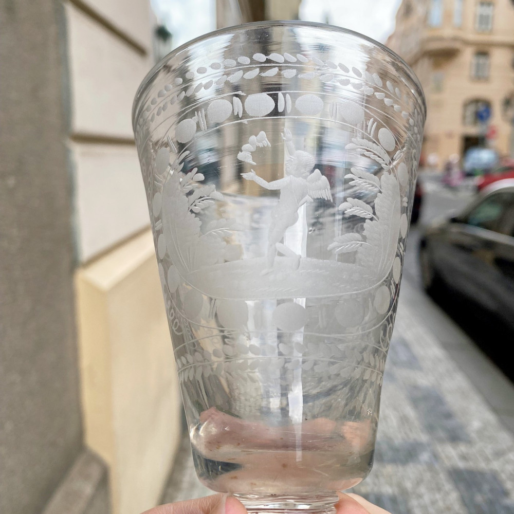 SOLD - Baroque goblet with engraving of cupid