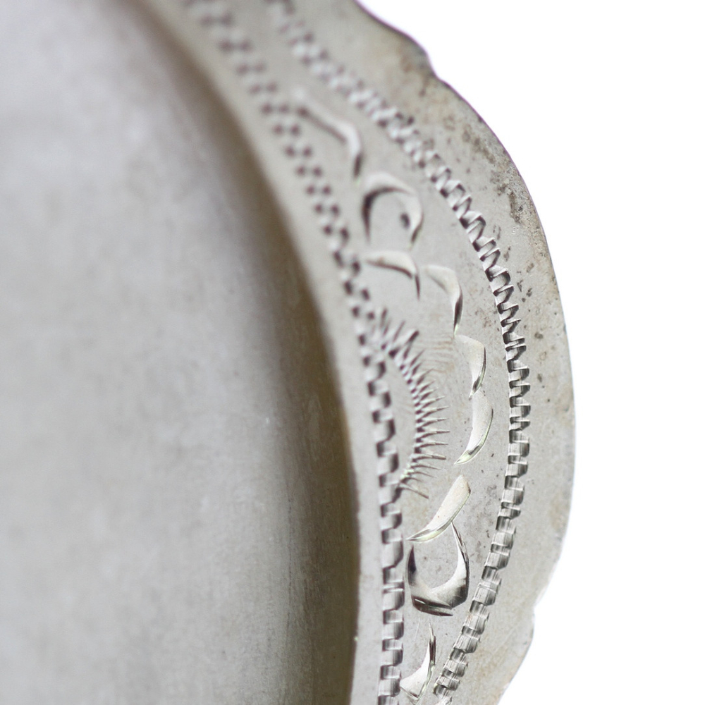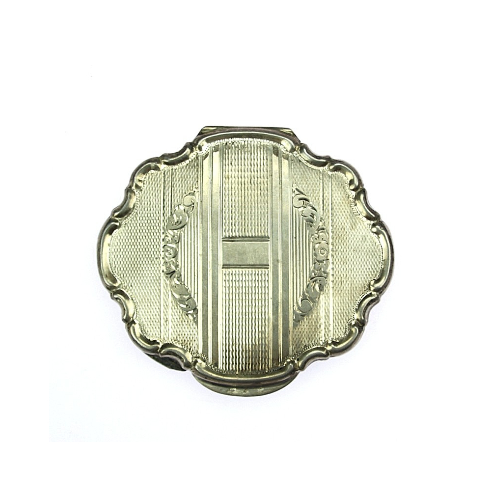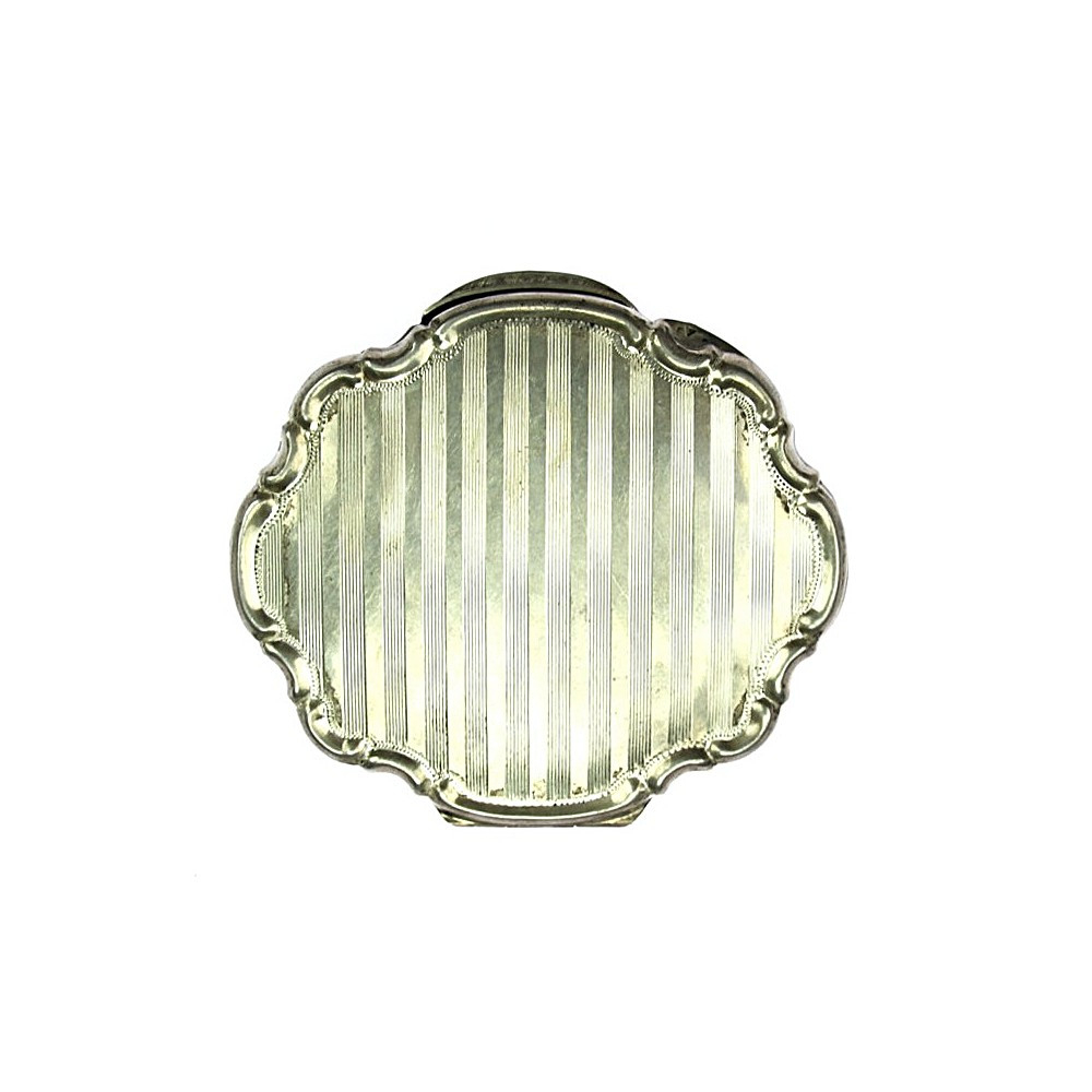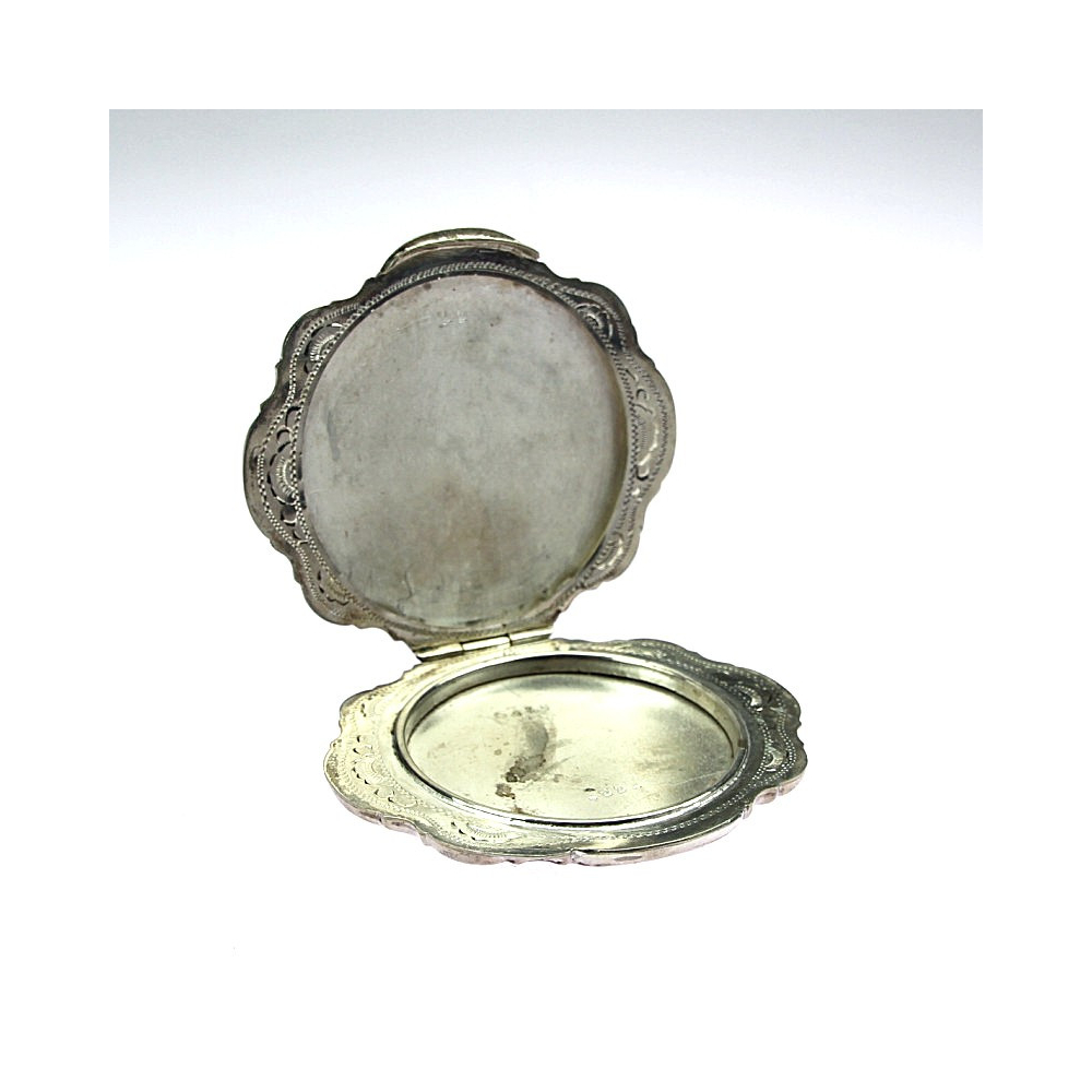 Powder box with a mirror made of silver. Richly engraved on the outer cases.
