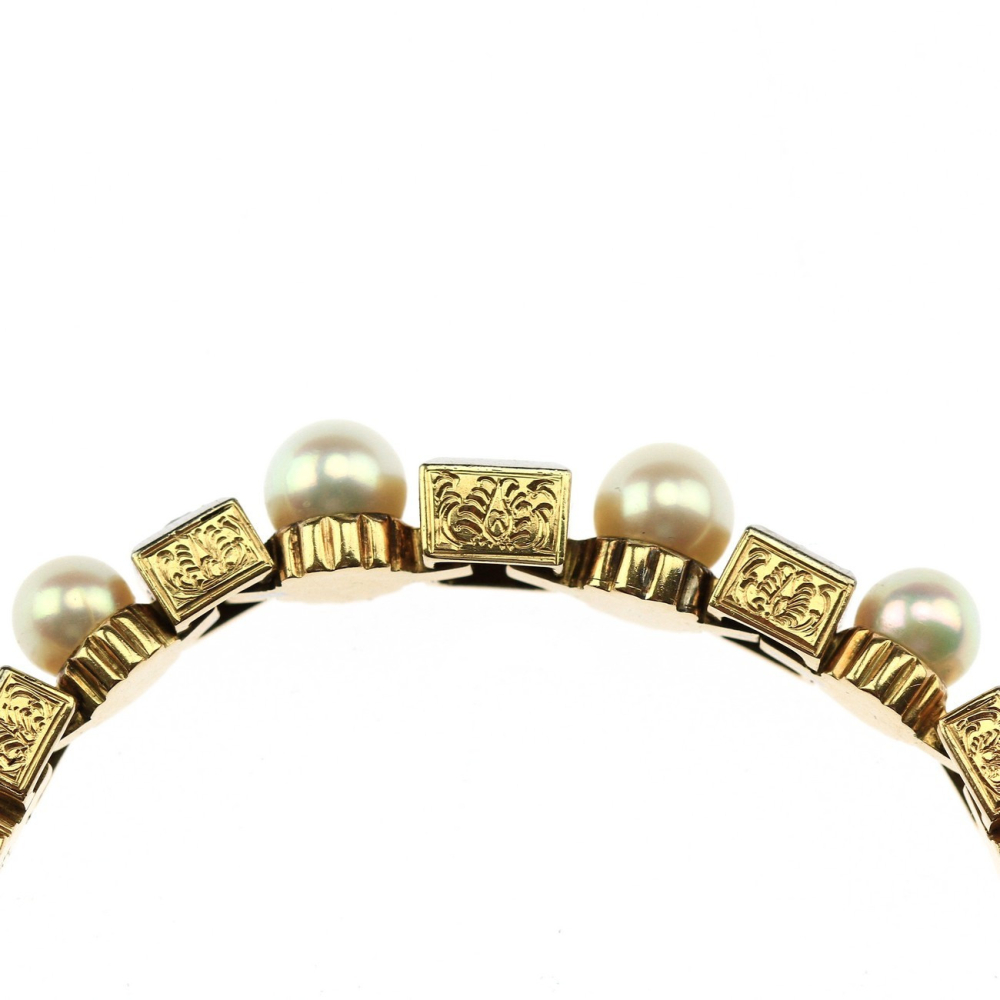 Charm bracelet made of yellow 14k gold with 17 gold pendants made of multicoloured 14k gold and precious stones (sea coral, malachite, pearl, jade). Several pendants are made of 10k - 9k gold. The pendants were probably collected by the previous owner during his travels around the world. We can find here, for example: giraffe, madonna, sea coral with...