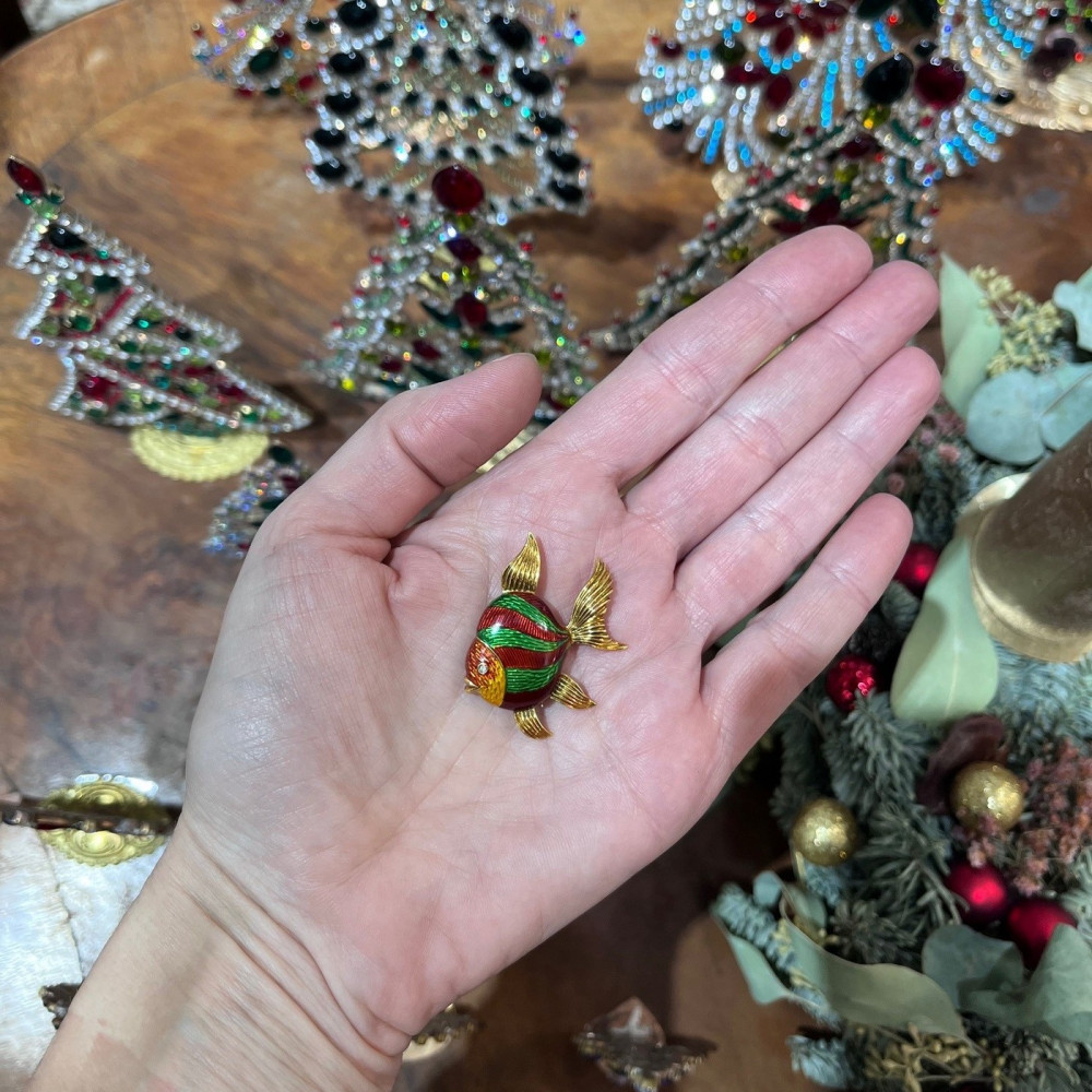 Gold brooch with enamel – fish