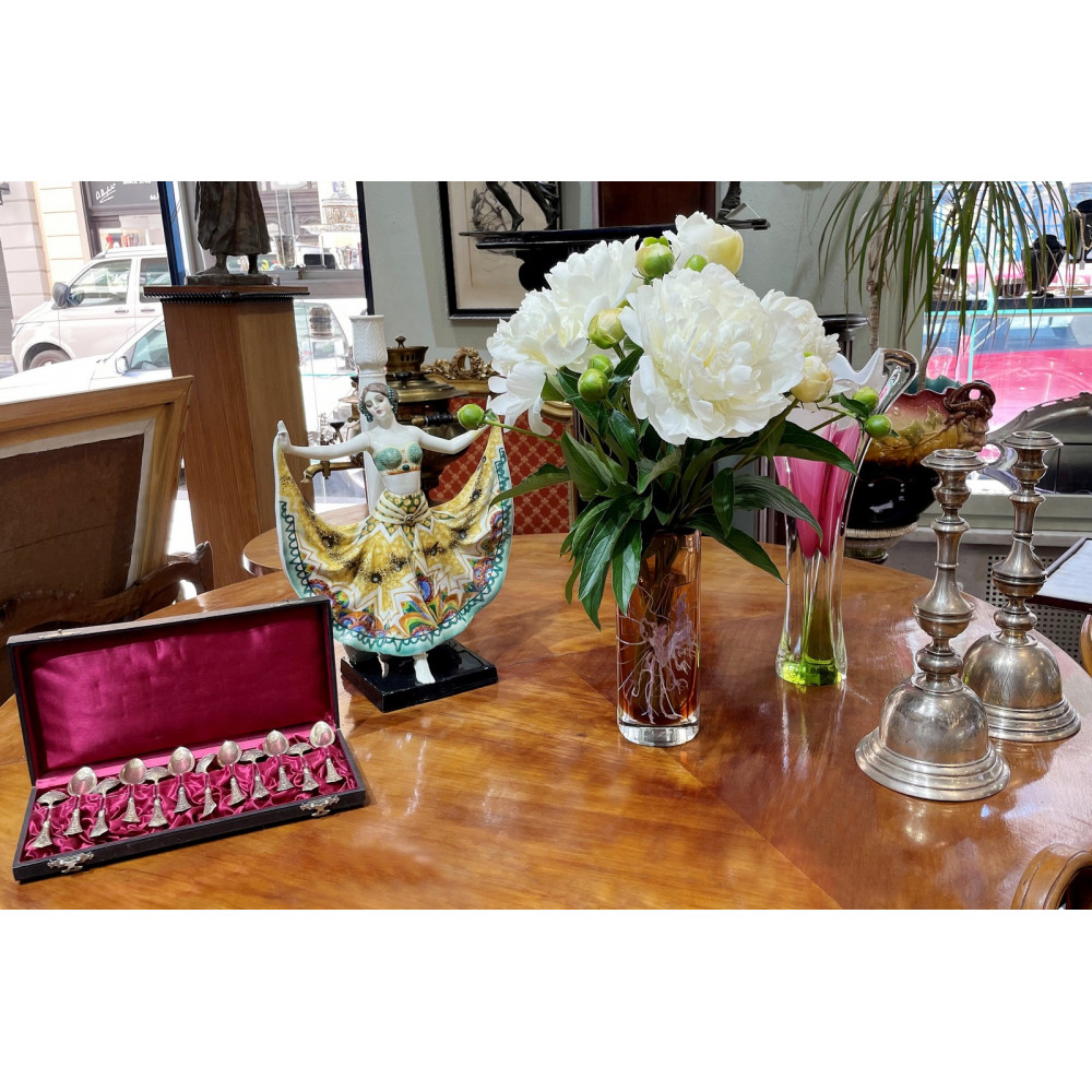 Figure of a dancer in very good condition was designed for the Goldscheider porcelain company by the French artist Albert Dominique Rose. Originally, a lamp was included, which has not been preserved. Marked "Goldscheider Wien".In 1885, Friedrich Goldscheider came from the Czech city of Pilsen to Vienna, where he founded the Porcelain Goldscheider factory...