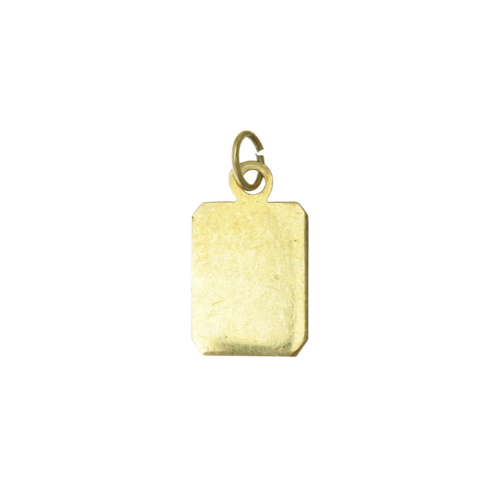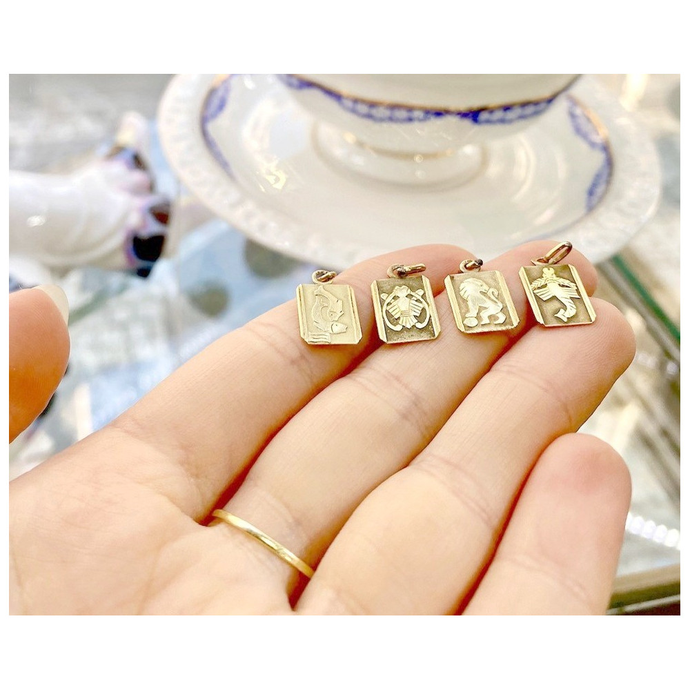 A small pendant with a zodiac sign made of 14k yellow gold. It is stamped with the Czechoslovakian "lion" hallmark used between 1929 and 1949.