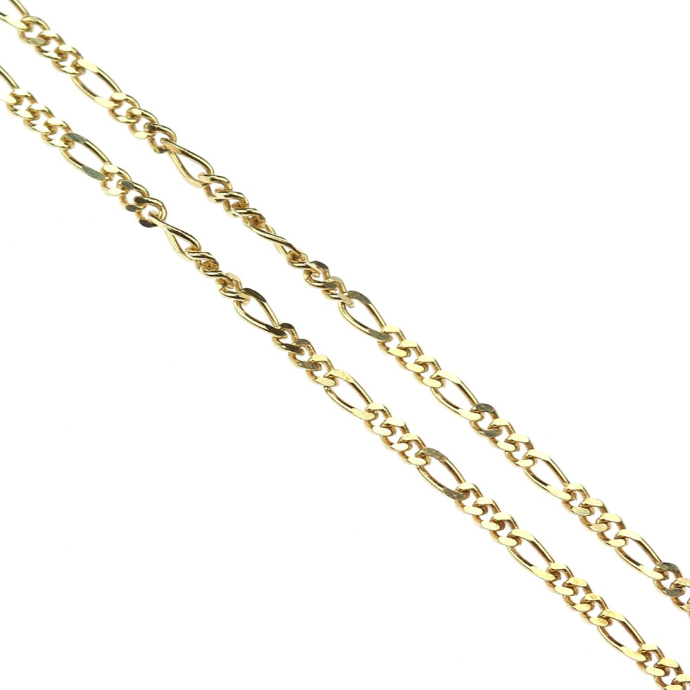 51,5 cm long 14k yellow Figaro gold chain, 2 mm wide. Spring ring clasp.