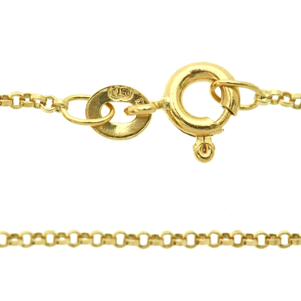 Rolo chain crafted from 18k yellow gold. Made in Italy in the 1950s–1960s by Unoaerre, a company based in the city of Arezzo and the province of the same name, which is renowned for its gold jewelry production. Spring ring clasp.