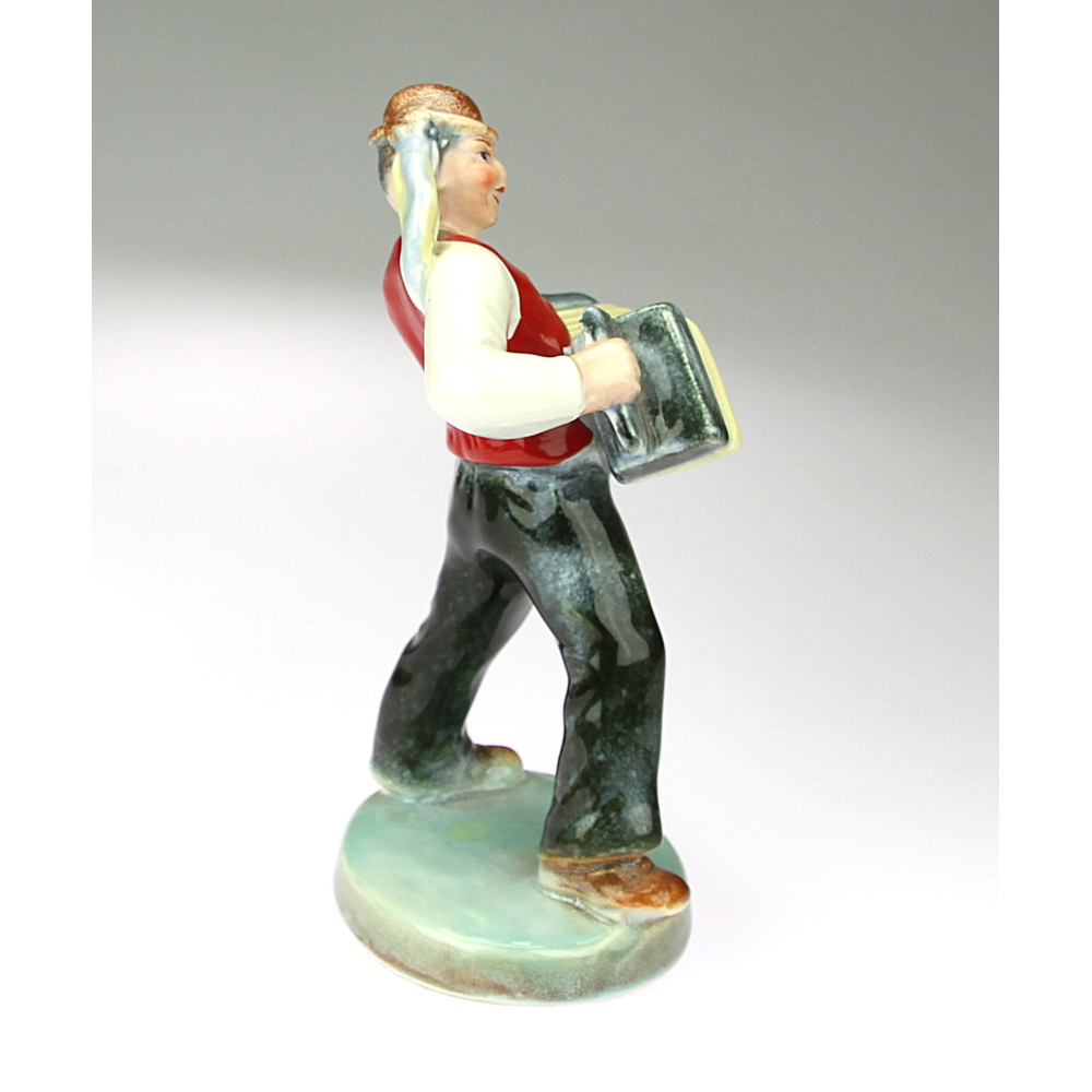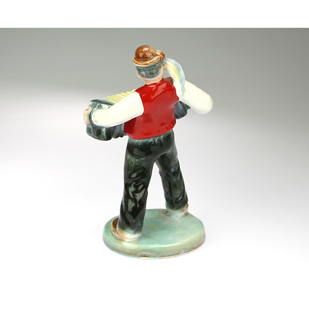 Sculpture of a country accordion player made in South Moravia. Glazed, hand-painted ceramics.