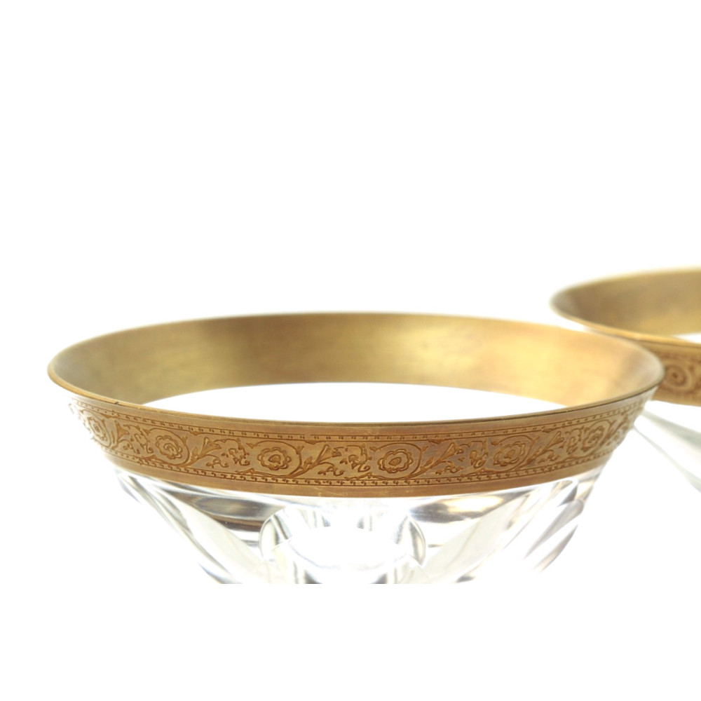 Set of 6 handmade stemmed glasses made of clear colorless glass (JESSIE collection), the upper part is decorated with a gold rim with an engraved ornament. The volume of the glass is approx. 200 ml.