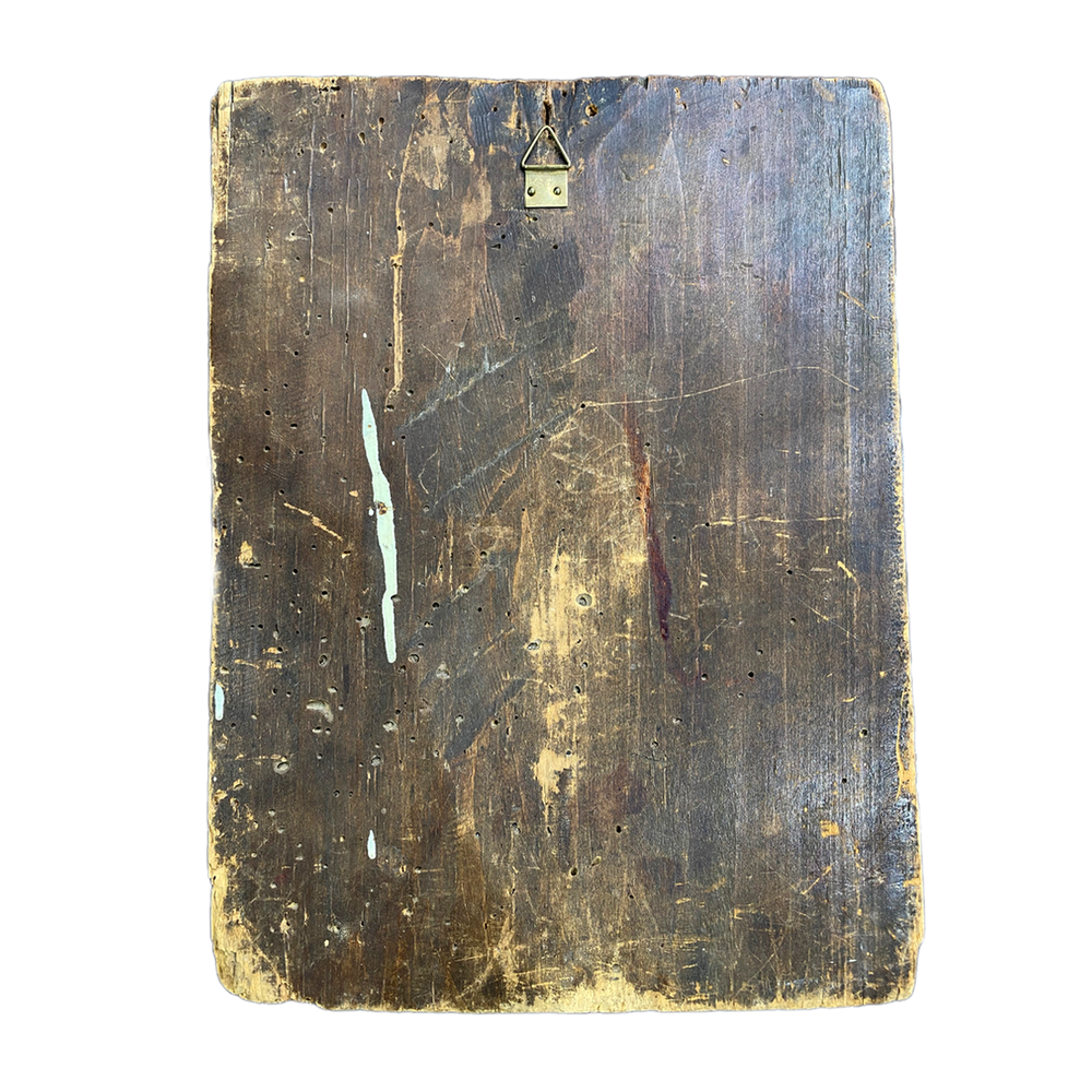 The item, which dates from the late 19th century, comes with a sales and export certificate issued by the National Heritage Institute. Due to its age, the icon shows minor damage (the painting is damaged at the edges and the board has been attacked by woodworm).