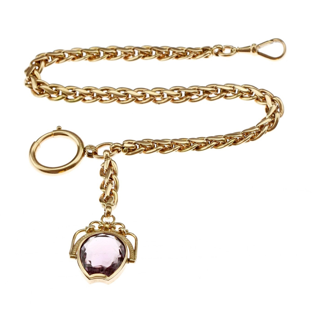 Austro-Hungarian gold pocket watch chain with amethyst