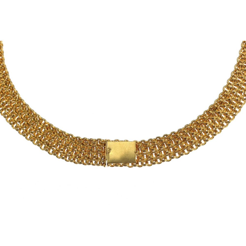 A magnificent gold necklace composed of four connected Garibaldi chains (double links) with a locket. Classic clasp was stamped in Prague with the Austro-Hungarian hallmark used between 1868 and 1901 for foreign goods.