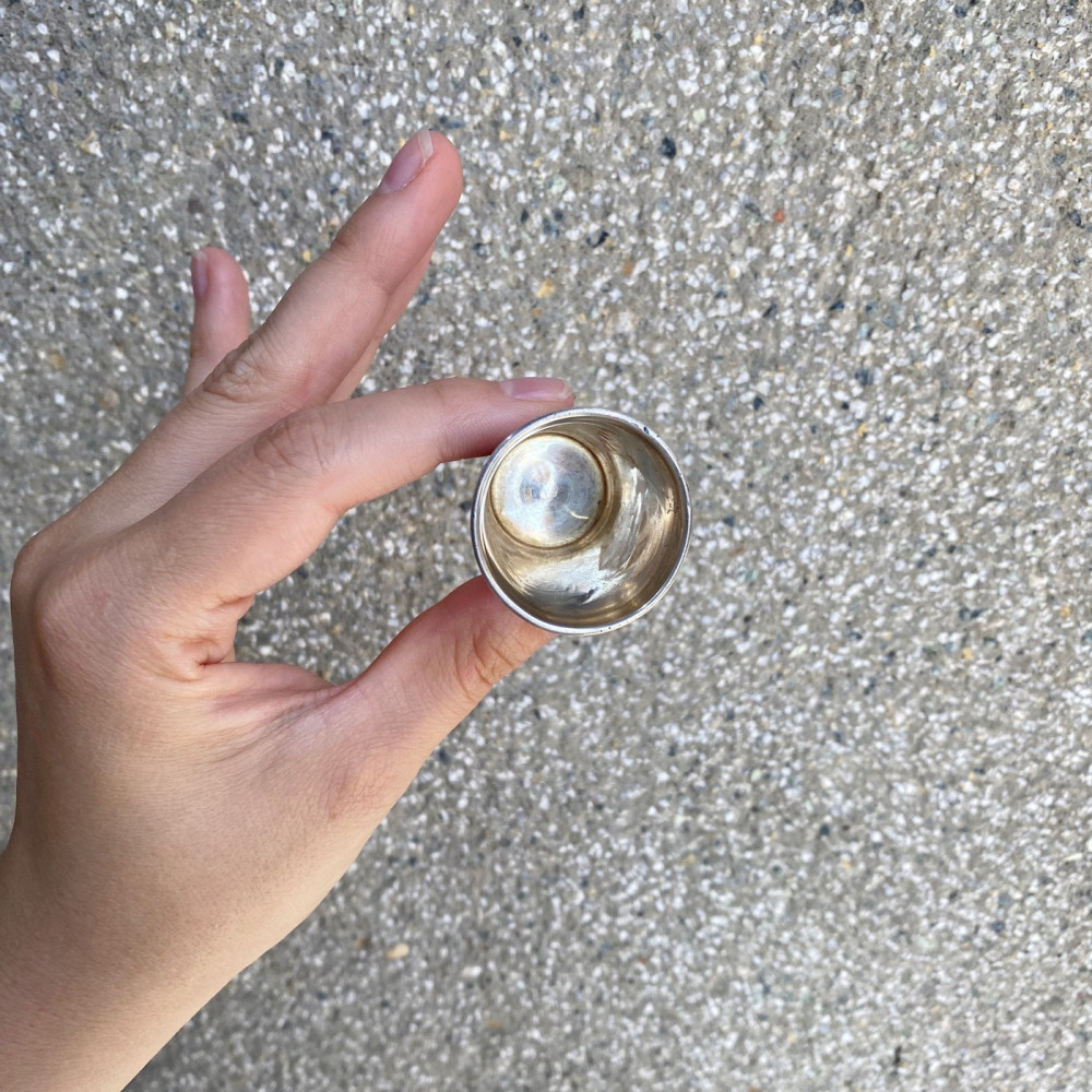 A cup made of silver with a fineness of 875/1000. On the bottom of the vessel is a hallmark used in Kiev between 1908 and 1926, along with a maker’s mark (possibly Igor Zaviandv Successors). The outer surface is decorated with delicate engraving. The silver fineness is certified by the Czech Assay Office.