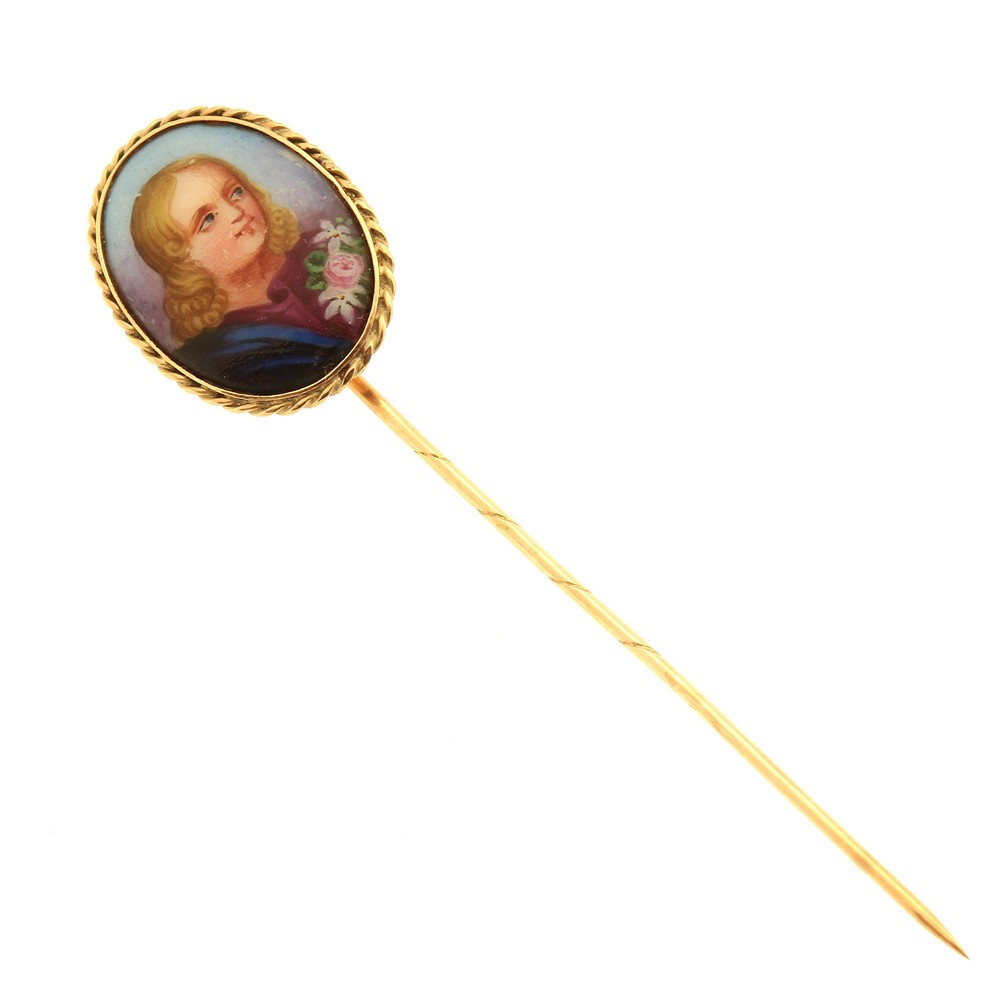 This brooch is made of approximately 15k rose gold (Au 625/1000) with the upper side palladium plated. The center part is set with a natural sapphire weighing 0.14 ct, which is framed by natural pearls. Pearls are also found at both ends of the brooch. The pin of the jewelry is made of 9k gold (Au 375/1000). The box is not included in the offer.