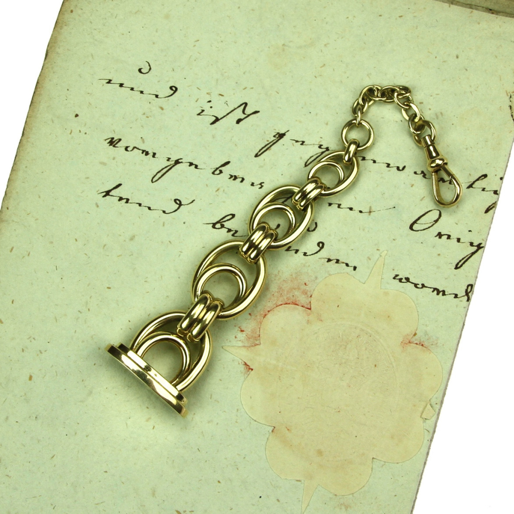 Short pendant, originally designed to hang on a pocket watch, made of yellow 14k gold. Marked with the First Czechoslovak Republic hallmark "lion".