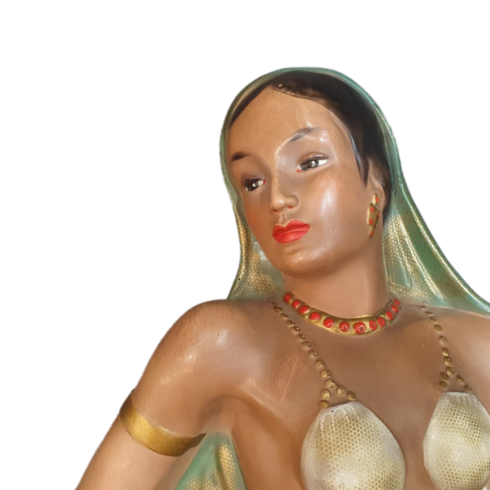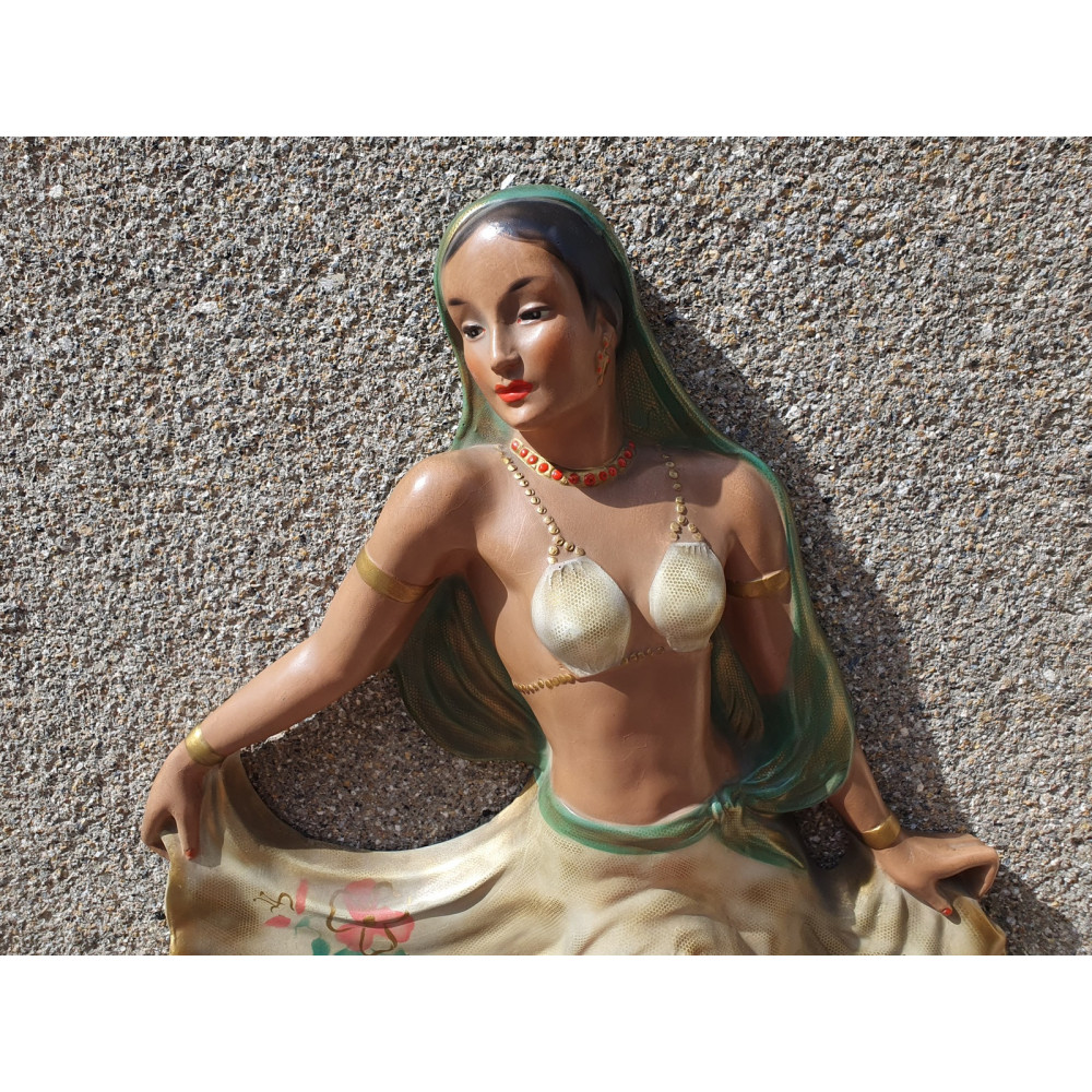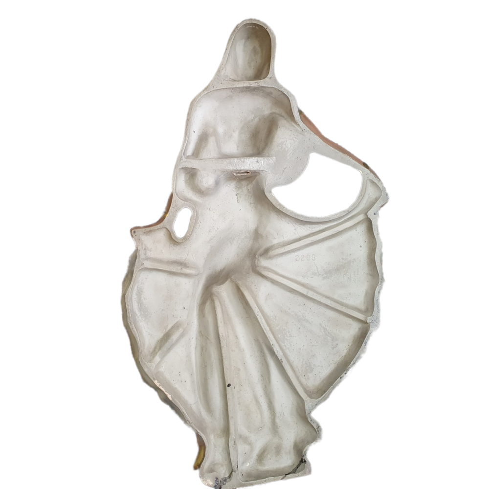 Wall sculpture of a dancer in motion cast in plaster, hand painted and with a sprayed decor.