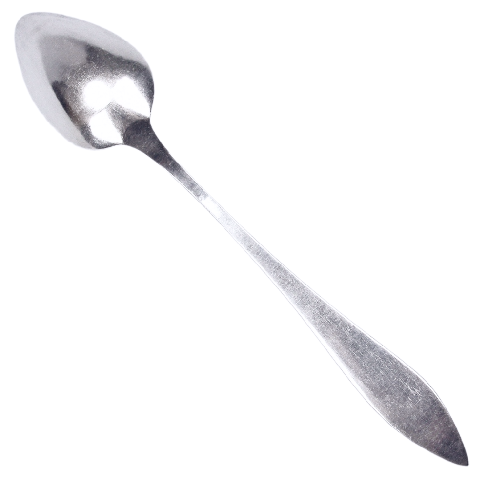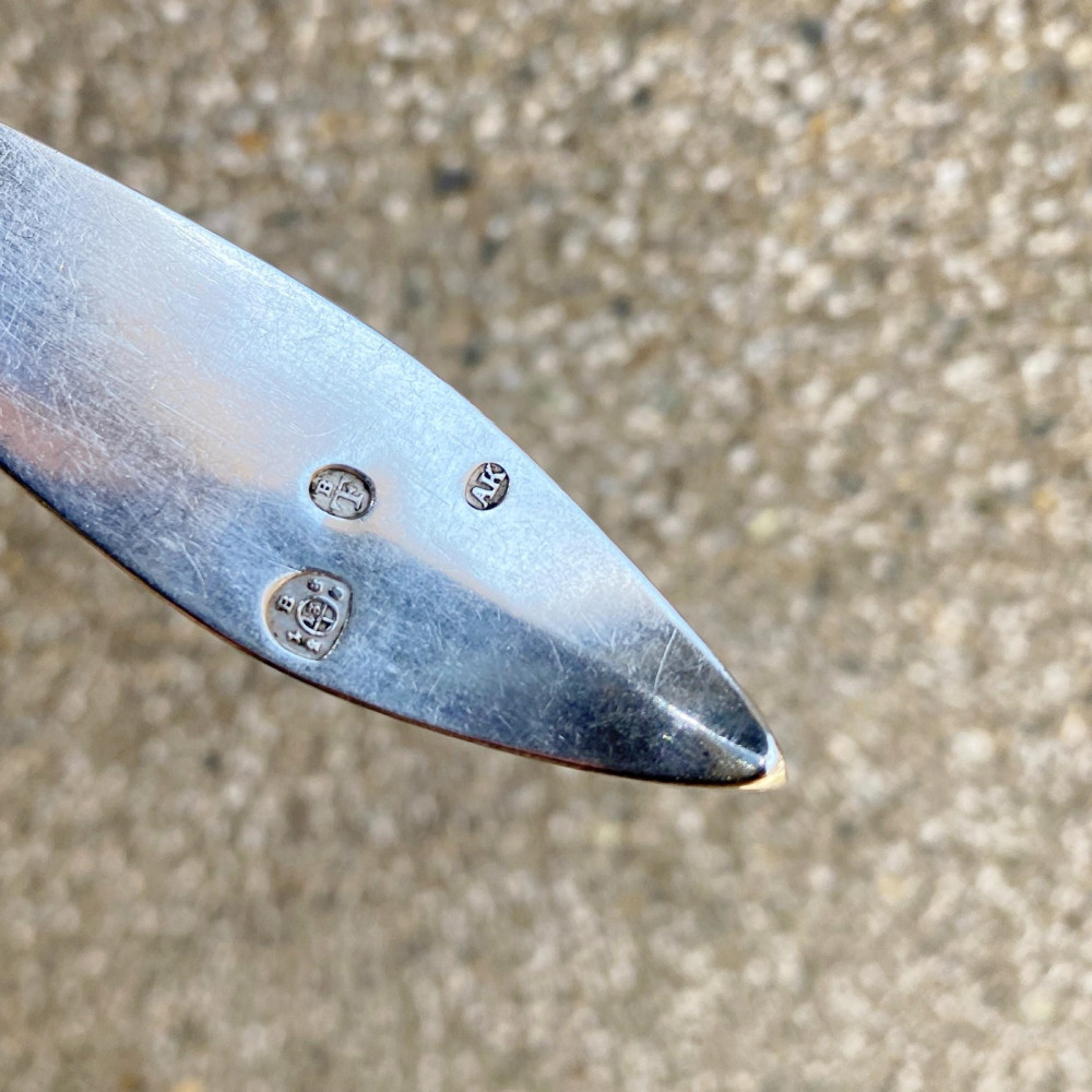 Considering its age, the spoon is in excellent, near-unused condition. Four pieces are available (some have a natural patina, which we will be happy to polish upon request).