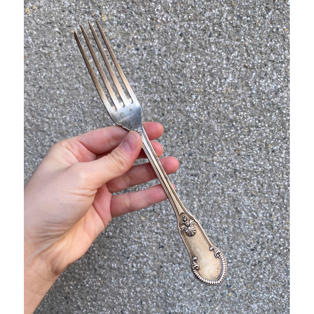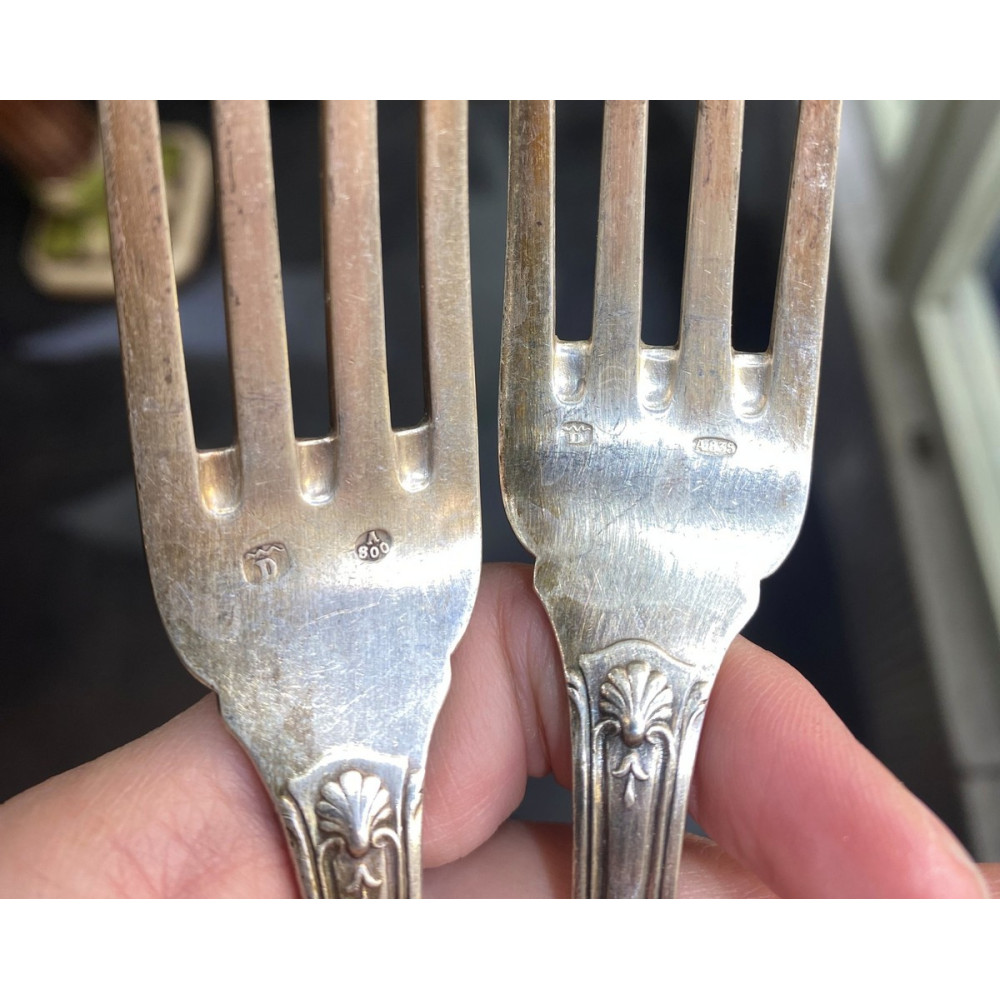 Six large forks made in the Empire style in the mid-20th century by the famous Brussels silversmith Delheid Frères. The material is silver with a fineness of 800/1000 and Ag 835/1000, as certified by the Czech Assay Office.