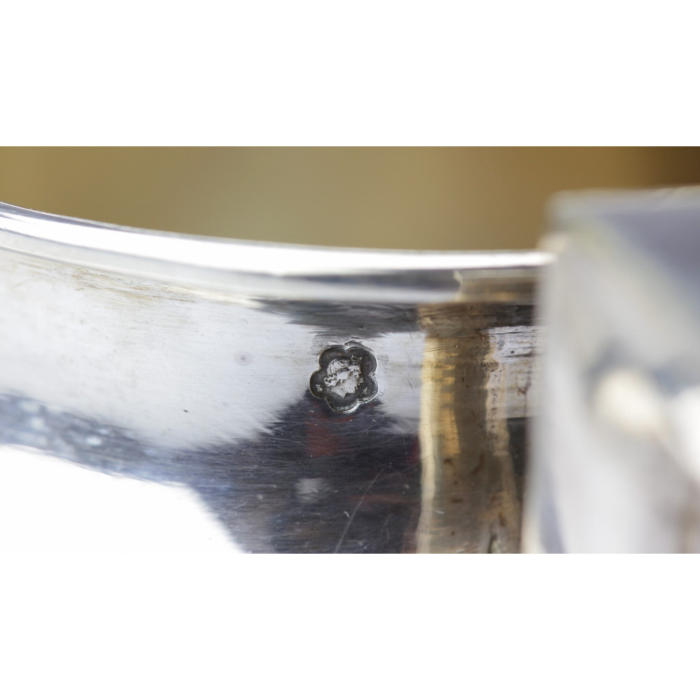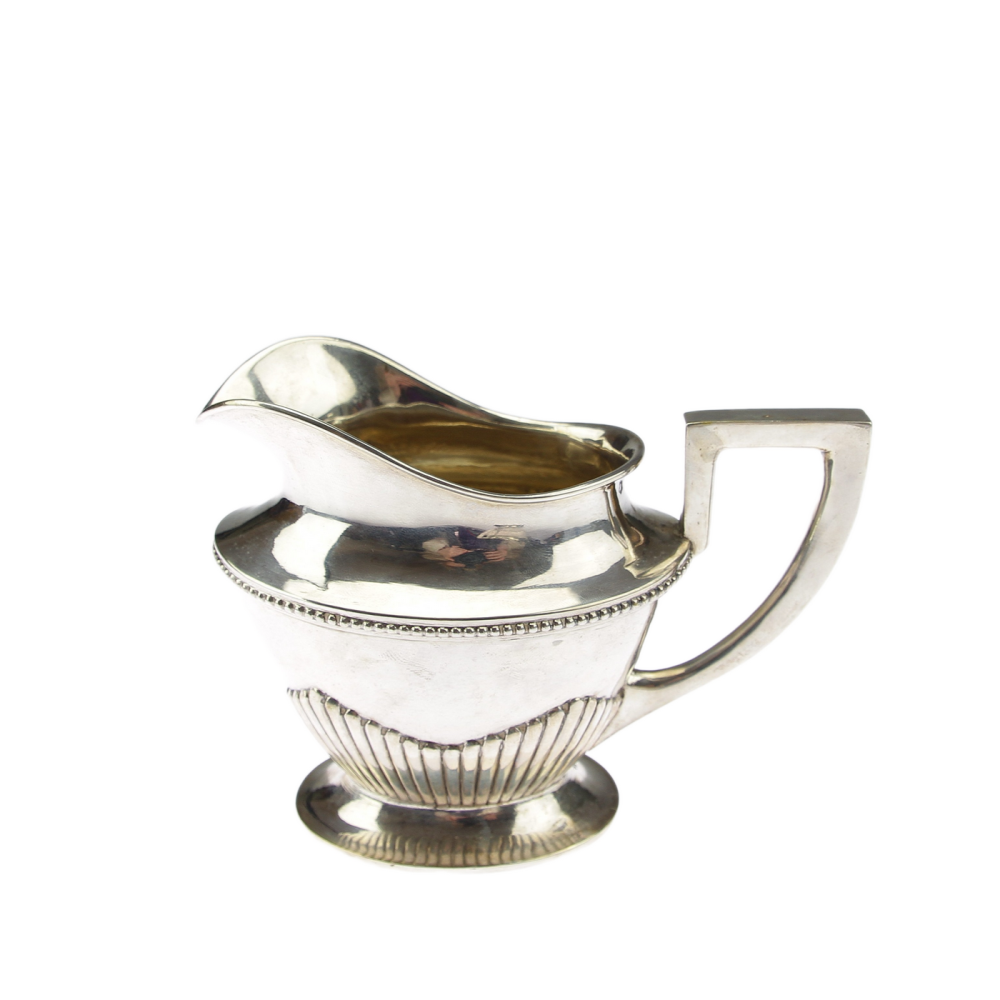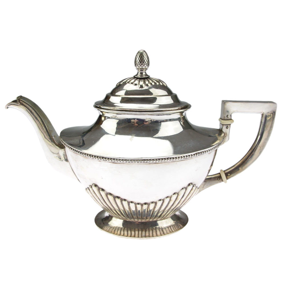 Tea set consisting of a teapot, milk jug and sugar bowl. Made entirely of silver of purity (Ag 800/1000) during the Austro-Hungarian Monarchy. Marked with the hallmark "Diana" with the letter "A" (the item was hallmarked in Vienna) used from 1872 to the early 1920s. Furthermore, also with the master mark "FF".