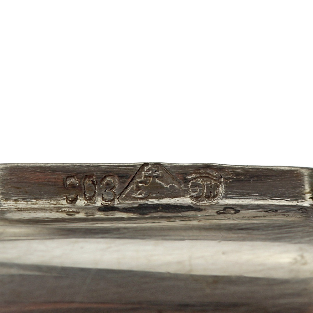 Massive sugar sprinkles made of silver of 800/1000 fineness come from the workshop of the renown Prague goldsmith and silversmith Rudolf Rechner. They are marked with a Czechoslovak hallmark used since 1929, the maker's mark "HG" and on the base "RUD. RECHNER".