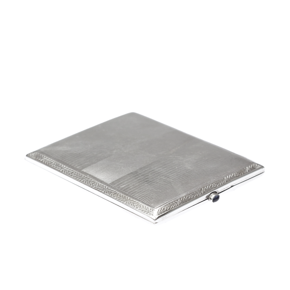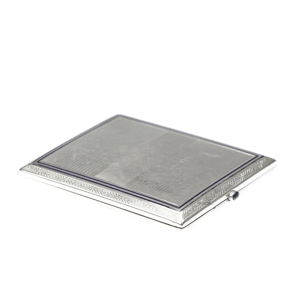 The silver snuff box is decorated on the front with enamel, which is completed with guilloche technique. Marked with the fineness number "800", the fineness of the metal is documented by a certificate from the Assay Office.