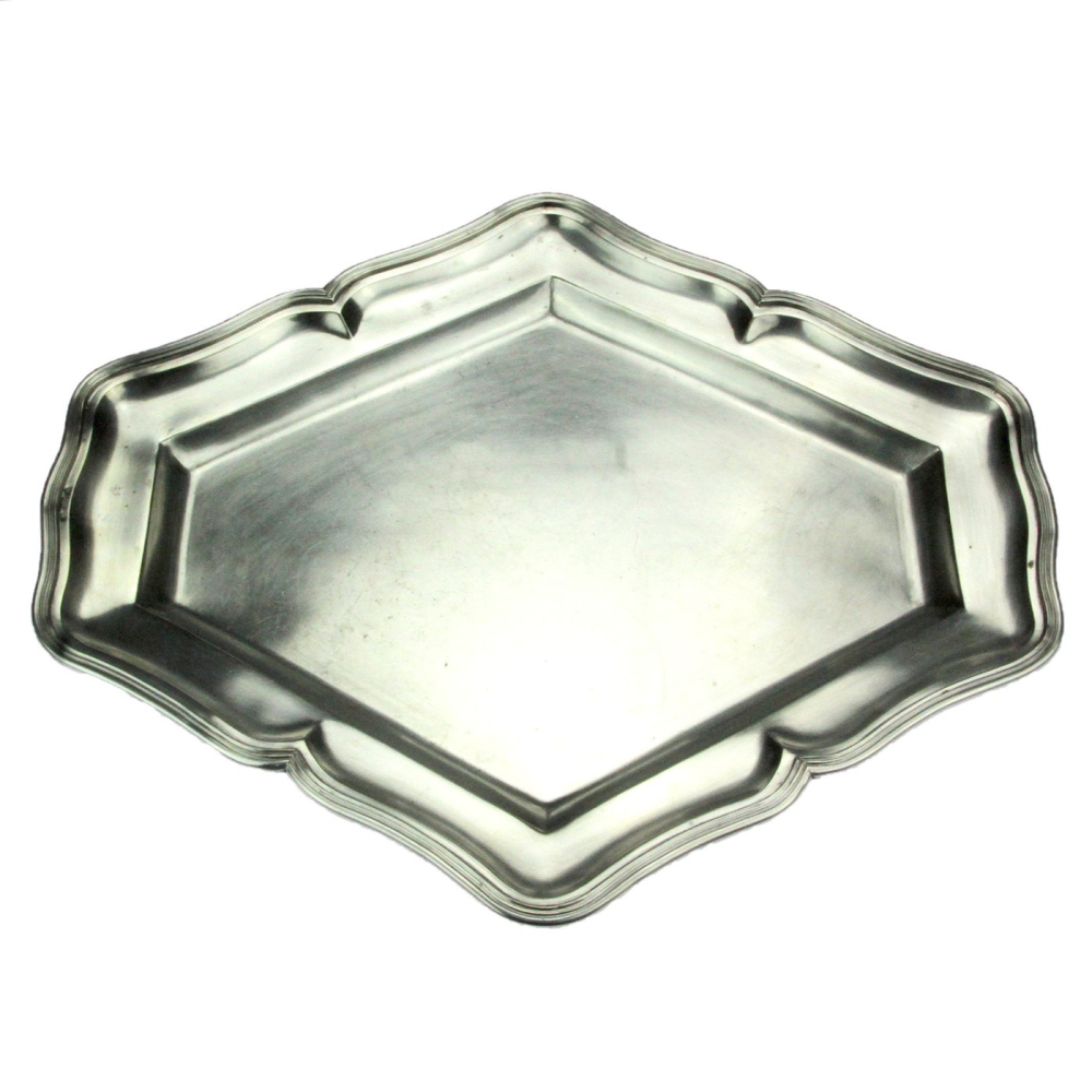 A large oval tray made of 830/1000 silver, marked with Danish hallmarks from 1948. The tray is smooth with simply profiled and slightly wavy edges.