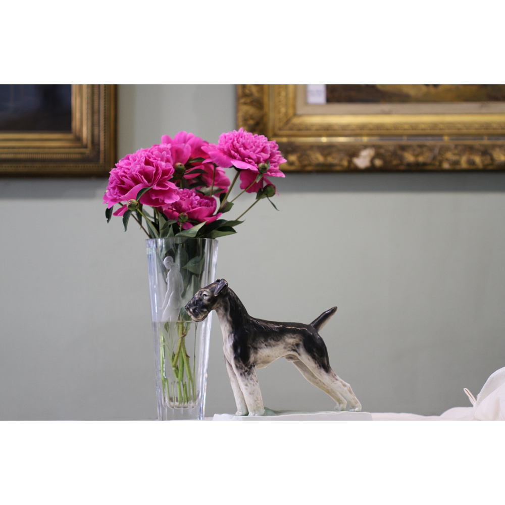 A rather large figure of a schnauzer dog made by Royal Dux. The markings at the bottom of the figure were used between 1925 and 1938. The model number is 404.